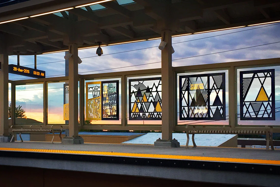 Denver Colorado's G-Line is an 11.2-mile electric commuter rail transit line connecting downtown Union Station to Wheat Ridge, passing through northwest Denver, Adams County and the city of Arvada. Ditroën was selected by the Regional Transportation District to create a series of custom windscreen designs for each of the shelters at the eight stations along the line. It is scheduled to open to the public in 2017.
