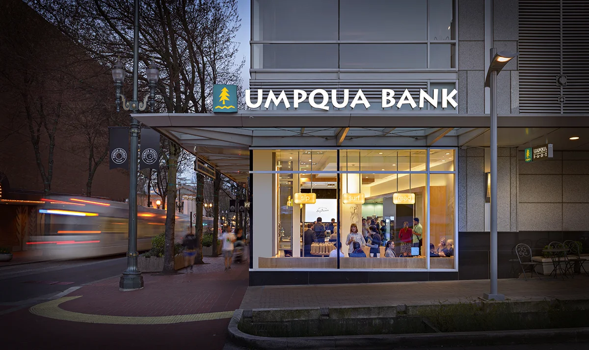 The Fox Tower store, the latest expression of Umpqua’s bank store model, designed to celebrate and showcase what makes Portland unique. The 2,782-square-foot branch features community and flexible meeting spaces for customers as well as a large interactive wall of mobile apps recommended by staff and a small library for a more analog experience. Customers are invited to savor Umpqua's signature coffee or Smith Tea and even a cookie or two while perusing a rotating retail offering from some of Portland's most compelling local businesses.